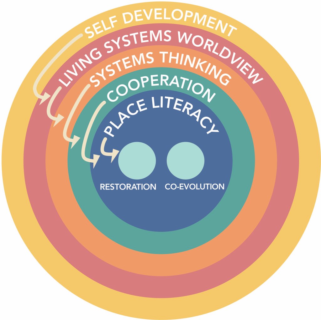As I return to the professional world full time—with all of these newly nested skills, relationships, and capabilities—I will also be constantly in the feedback loop of starting again with self development and self care, which will shift my worldview, as learn new ways of systems intervention, while building new cooperative community links and discovering cultural and ecological place literacy, all leading to restoring and furthering co-evolving with nature. This work will consistently bring me back to self development as I learn how to better build equitable and ecologically life-giving systems.