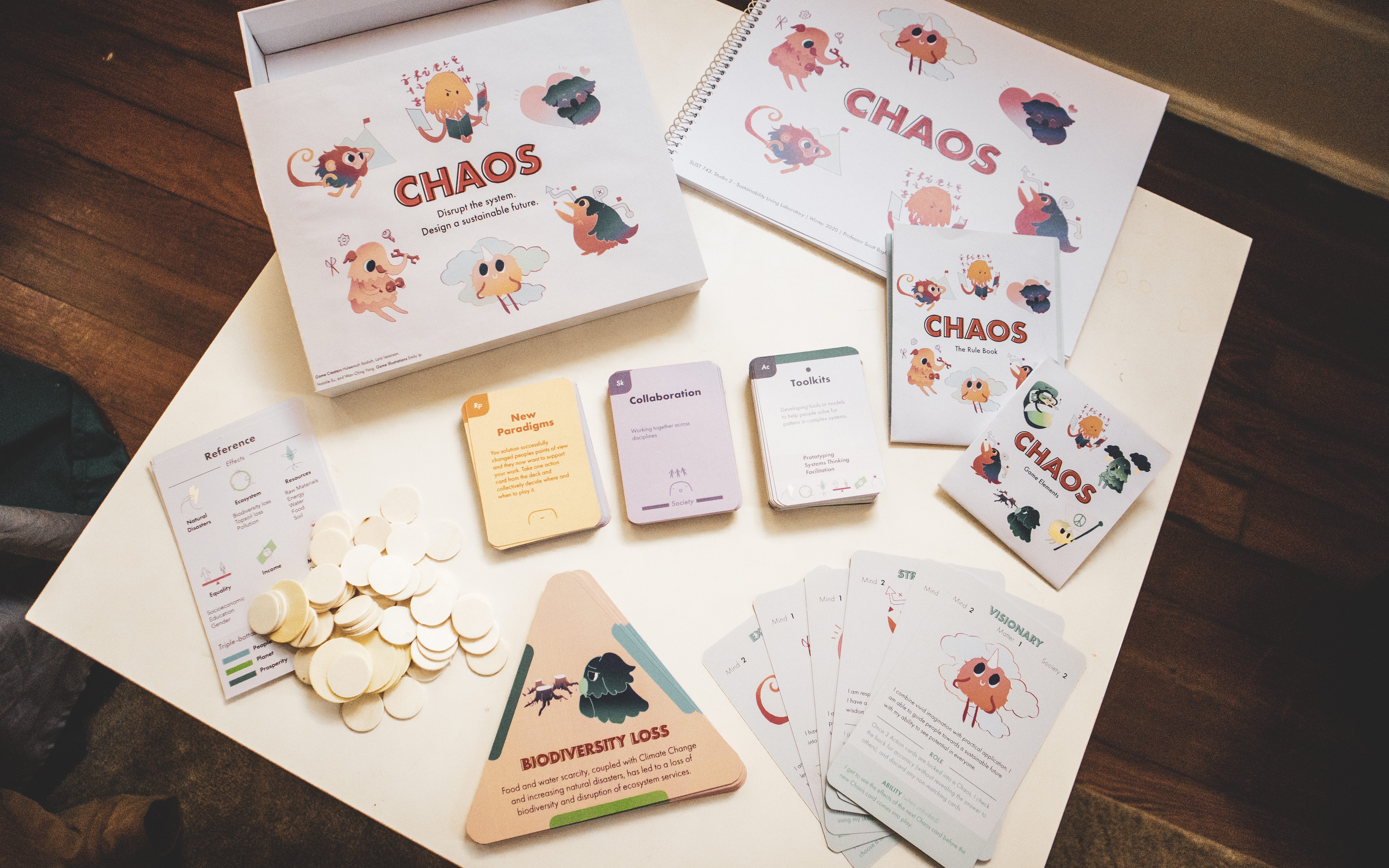 Design for sustainability is a complex discipline for a growingly chaotic intersection of Earth’s human and natural systems. With Chaos, the cooperative strategy card game, you learn a myriad of cutting edge sustainability solutions while playing cute creatures in an engaging, dynamic gameplay. View more