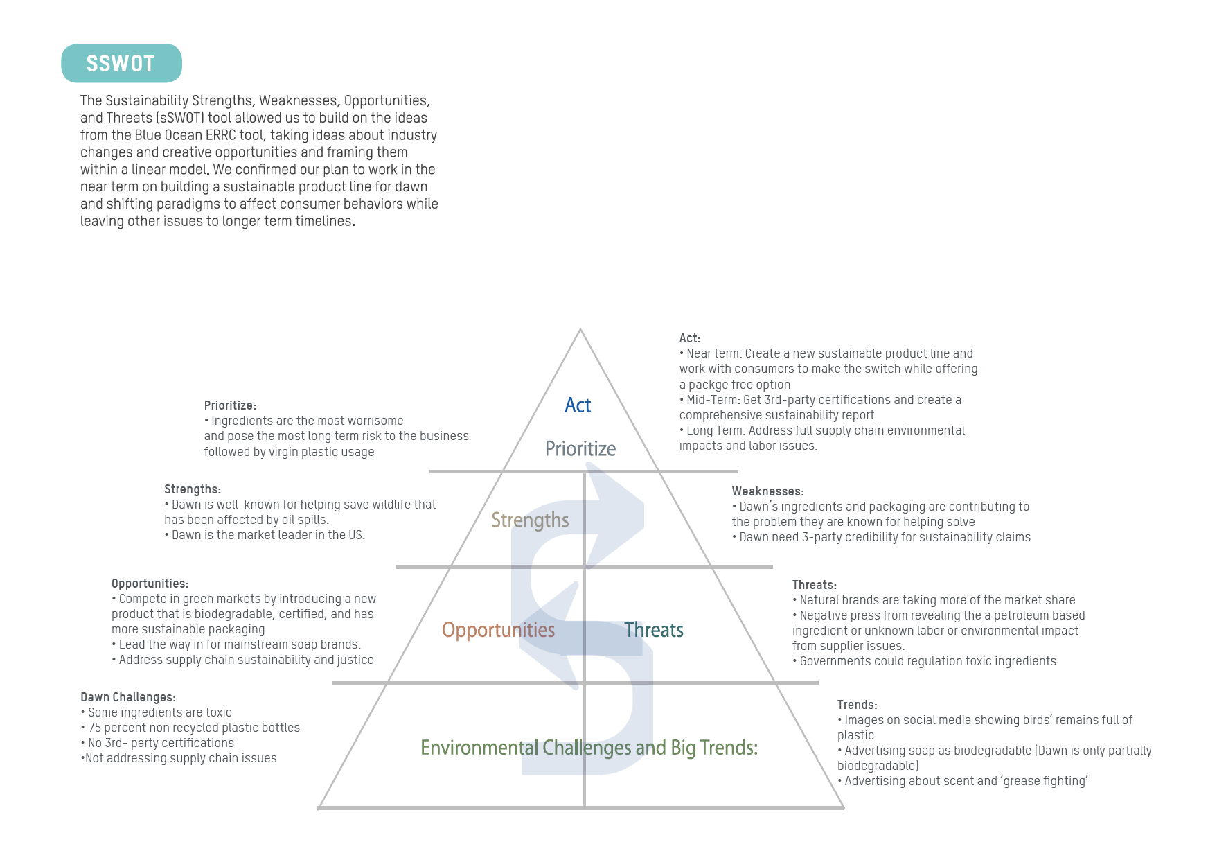 Every step helped us zeroing in on a delightful and practical way to shift Dawn® into a leadership position as a sustainability integrated company. The process book to Dawn® in hopes that they will soon implement some of the ideas.