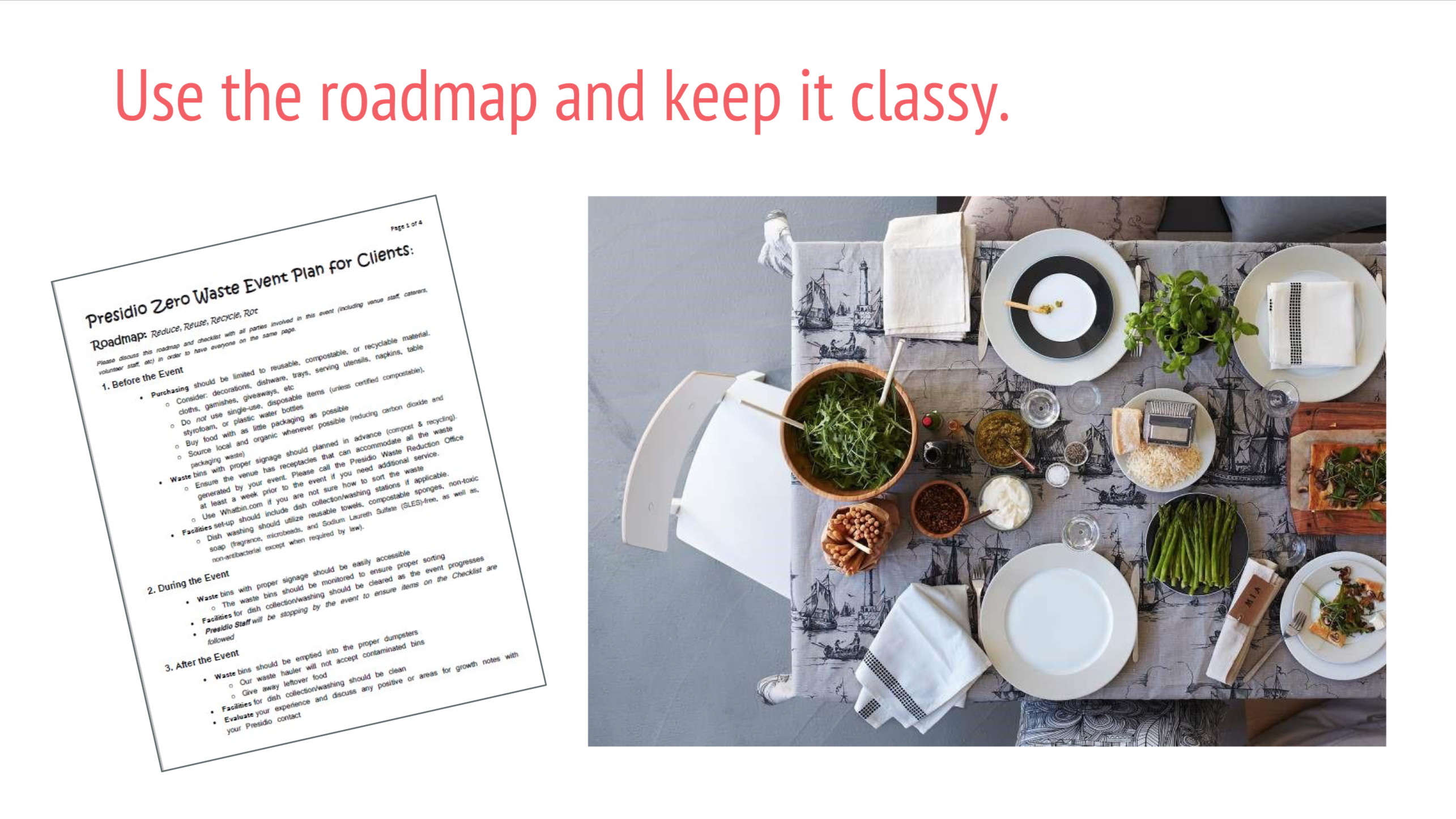 I was then asked to present the new guidelines at a meeting with the ‘Preferred Caterers’ of the Presidio event venues (a crowd of about 80 professionals).