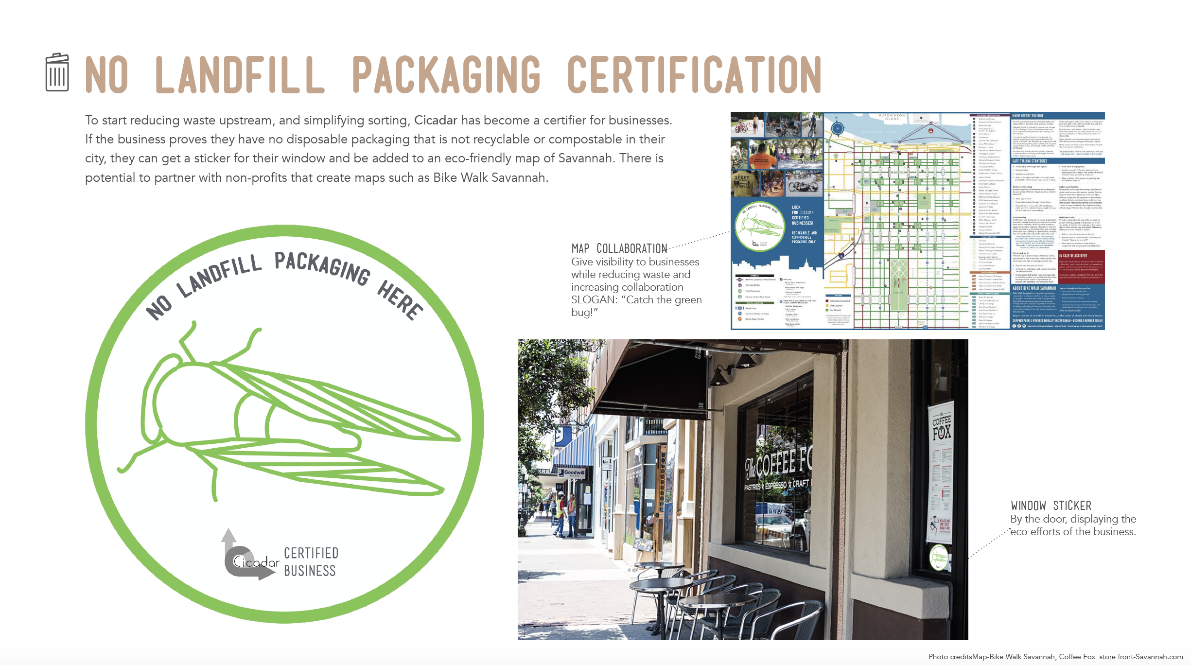 On this team, I headed up graphic design (see below for more information on my process). Along with book layout, I created a new, multilingual and educational signage, and a ‘No Landfill Packaging Certification’ sticker for local businesses to put in their windows.